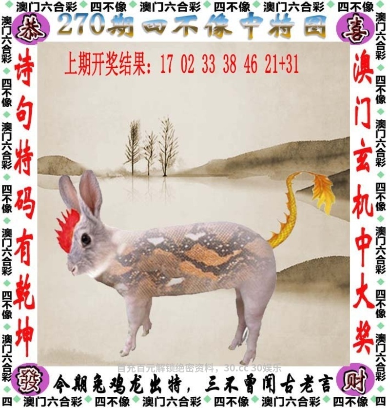 270期:今期兔鸡龙出特,三不曾闻古老言开:羊35准 ②合双+大数 |